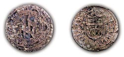 Dritte und wichtigste Institution, die in Münster Münzen herausgab, war das Bistum Münster. Von ihm fanden sich nur zwei Exemplare, die unter Bischof Friedrich Christian von Plettenberg (1688-1706) geprägt worden waren: ein 6-Pfennig-Stück aus Silber von 1696 und ein kupfernes 4-Pfennig-Stück von 1703.