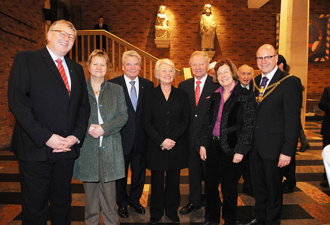 Das Rathaus, die Westfälische Wilhelms-Universität und das Annette-von-Droste-Hülshoff-Gymnasium waren am Donnerstag, 28. November, Stationen eines Besuchs von Bundespräsident Joachim Gauck in Münster. Im Rathaus trug er sich auf Einladung von Oberbürgermeister Markus Lewe ins Goldene Buch der Stadt ein. Zuvor hatte der Bundespräsident eine Ausstellung über Muslime in Deutschland im Annette-Gymnasium besucht. Auftakt des siebenstündigen Programms war am Vormittag in der Universität, wo der Bundespräsident das Zentrum für Islamische Theologie besuchte.