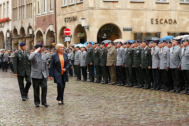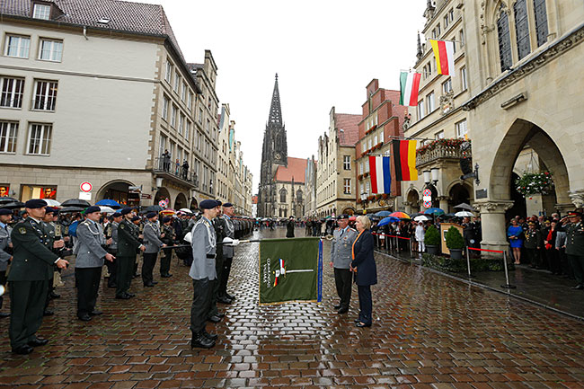 Deshalb fanden sich am Donnerstag, 27. August, rund 250 geladene Gästen im Rathaus des Westfälischen Friedens ein. Bei der anschließenden militärischen Parade auf dem Prinzipalmarkt vor dem Rathaus waren König Willem-Alexander der Niederlande und Ministerpräsidentin Hannelore Kraft anwesend. Hannelore Kraft verlieh dem Korps das Fahnenband des Landes Nordrhein-Westfalen.