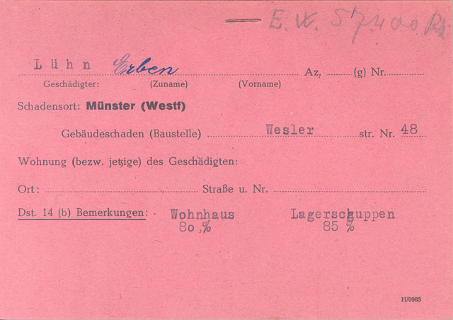 Herr Lühn vermietete die Tankstelle von 1956-1963 an Franz Ureimer, der auf der Jahnstraße 1 in Münster wohnte. Der Vermietzins belief sich auf rund 1.500 DM im Jahr. Im Zweiten Weltkrieg wurde das Haus zu 90 Prozent zerstört. Die Kriegsschädenliste weist für Nr. 48 auch aus: Schuppen 85 Prozent zerstört, keine Wohnungen. Aus der Zeit nach dem Krieg existiert ein Gesuch des Gastwirts Hermann Waldhoff um Erteilung einer Konzession („vorläufige Schankerlaubnis“) für die Gaststätte Weseler Straße 48, Inhaberin Witwe Lühn. Herr Waldhoff hatte die Gaststätte von ihr gepachtet. Nach dem Tod ihres Mannes wollte Frau Lühn die Gaststätte offenbar nicht alleine weiterbetreiben. Herr Waldhoff erhielt die Schankerlaubnis. Später erhielt er außerdem die Erlaubnis, die „Polizeistunde“ auf zwei Uhr zu verlängern, da seine Kundschaft aus Sportlern bestand, die auch nach dem Sport noch gerne bei ihm einkehren wollten (Mitglieder und Spieler des FC Preussen 06).
