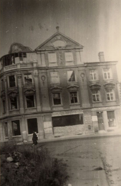 Ja, man hat das Haus nach dem Zweiten Weltkrieg ganz anders wieder aufgebaut. Das Haus wurde komplett zerstört, durch eine Brandbombe. Die ist direkt mitten in das Haus eingeschlagen. Ich kenne das Ereignis nur aus den Erzählungen von meinem Mann. Er war noch im Haus gewesen, ist dann aber weggegangen und hat unterwegs jemanden aus der Nachbarschaft getroffen. Der hat zu ihm gesagt: „Weißt Du nicht, dass Euer Haus brennt?“ Er antwortete: „Das kann ja gar nicht sein, ich komme ja gerade da her“ – ja, und da war es passiert.