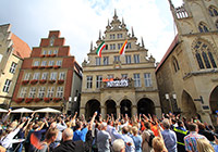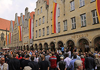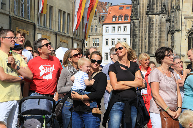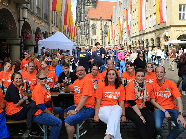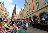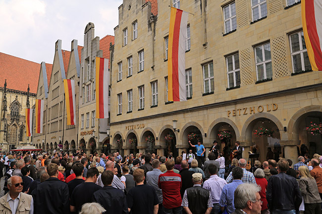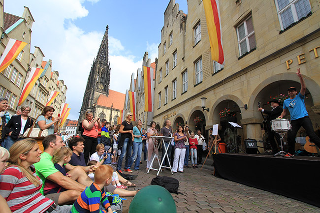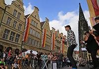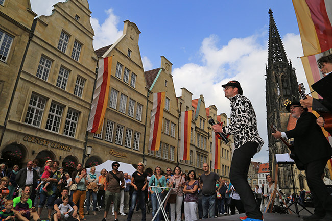 Rund 2.500 Menschen folgten der Einladung und feierten bei bestem Wetter und einem bunten Programm. Oberbürgermeister Markus Lewe dankte allen Helferinnen und Helfern und lobte den Zusammenhalt und die Solidarität in Münster.