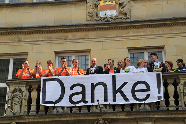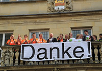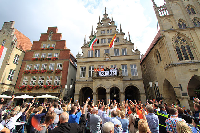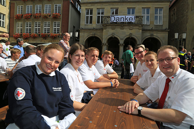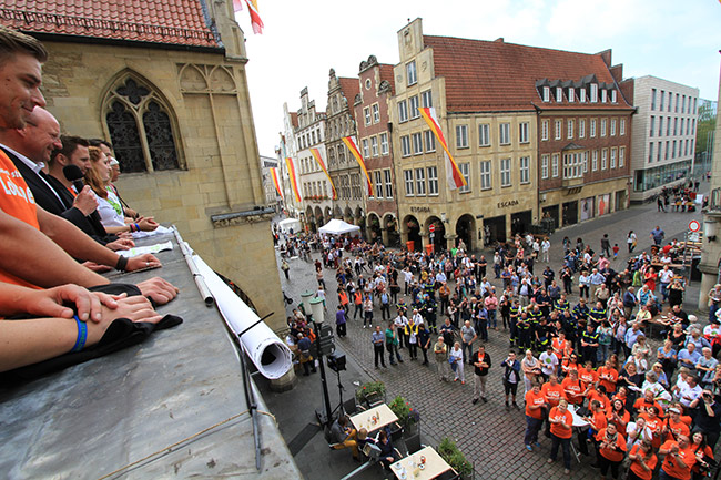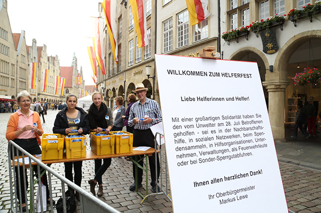 Knapp sechs Wochen, nachdem der Rekord-Regen am 28. Juli Münster in einen Ausnahmezustand versetzt hat, hat die Stadt allen Unwetter-Helferinnen und -Helfern "Danke" gesagt. Am vergangenen Sonntag, 7. September, wurde auf den Prinzipalmarkt eingeladen.