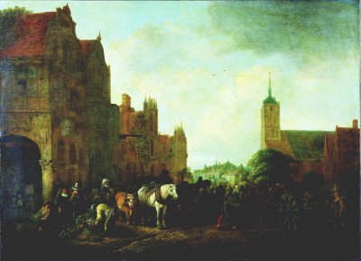 Zu den wichtigsten Straßen der Stadt zählten diejenigen, an denen sich die ständigen Märkte Münsters befanden. Es handelte sich dabei um den Prinzipalmarkt, den Alten Fischmarkt und den Roggenmarkt. Auf den ständigen Märkten fand ein dauerndes Feilbieten von Waren unter dem Schutz der Stadtmauern und des Landesherrn statt. Auf dem Prinzipalmarkt wurden allerlei verschiedene Waren verkauft. Auf dem Roggenmarkt, ein Teil davon hieß auch Hafermarkt, boten die Kornhändler ihre Waren an, und auf dem Alten Fischmarkt gab es Fisch zu kaufen. | ||||