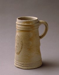 Dieser Bierkrug, der im Auftrag der Kramergilde im rheinischen Siegburg