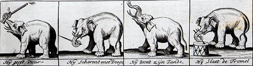 Dressierter Elefant, Kupferstich 1650 (Ausschnitt -