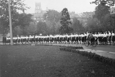 "Eine Reihe von Aufnahmen vom Tanz der jungen Mädchen in der Frühe im Schlossgarten."