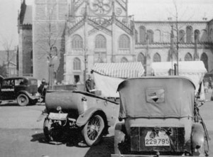 "Dabei kann man die sonderbarsten Vehikel beobachten. Alles was noch Räder hat, wird heute zur Arbeit angespannt."