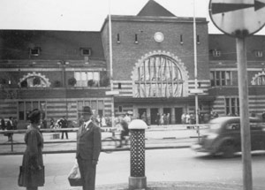 "Jeden Tag, wie auch heute am 1. August sind viele Münsterländer unterwegs um Münster zu besuchen. Sie staunen über die sonderbaren Fenster am Bahnhofsgebäude. Sie staunen, daß schon die Autos wieder fahren können und schleppen Pakete mit sich mit Obst und Gemüse für münstersche Verwandte."