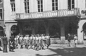 "Münster bleibt stehen, wenn die Nachrichtenhelferinnen in Uniform und im Gleichschritt und dazu frischfröhlich singend 'O du schönes Sauerland' in den Schatten des Rathauses hineinmarschieren."