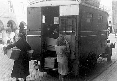 "Auch die Mädels, die jeden Tag die Paketpost in der Altstadt verteilen müssen, haben an den kalt gewordenen Septembertagen, statt der warmen Postuniform, vorerst noch warme Herbstkleider aus dem eigenen Kleiderschrank angezogen."