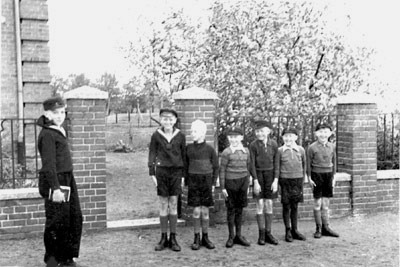"Diese fünf Kleinen in der Breiten Gasse spielen gerade 'Luftschutzkeller'. Komm schnell mein Kleines, sagt der Junge links zu dem kleinen Mädchen. Ich ziehe Dir schnell Dein Mäntelchen für den Keller an. Als ich die beiden zur Rechten frage, was sie machen, sagt die Eine: 'Ich muß die Mia schnell verbinden, sie hat einen Splitter abgekriegt.' Dabei bindet sie ihr einen Bindfaden so um den Bauch, daß die Hände mit festgebunden werden."