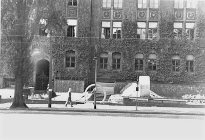 "Am Eingang der Wolbeckerstraße werden vor dem Eisenbahngebäude große Zementrohre in die Erde hineingebracht, die zur Herrichtung von Luftschutzbunkern dienen."