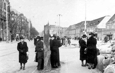 "An diesem Baumstumpf, neben dem zerstörten Postamt II ist der Fahrplan für die Strecke Senden und zum Kappenberger Damm angeschlagen."