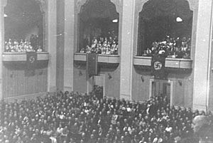 Rede des NSDAP-Kreisleiters Ernst Mierig auf einer Großveranstaltung der NSDAP