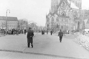 "Wie mag es jetzt im Februar 1944 auf dem Domplatz und in seiner Nachbarschaft aussehen, muß ich denken, da ich ihn seit Anfang Dezember nicht mehr gesehen habe. Gerade ist Markttag. Wie gering die Zahl der Marktstände doch geworden ist."