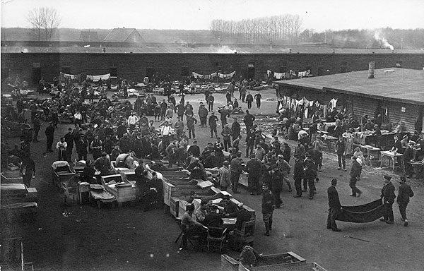 In Münster entsteht das größte Kriegsgefangenenlager Nordwestdeutschlands. Insgesamt leben von 1914 bis 1918 etwa 90.000 Kriegsgefangene aus Frankreich, England, Russland, Belgien, Italien, Portugal und Serbien in der Stadt. Für die Kriegsgefangenen werden drei Lager eingerichtet: Lager I: Haus Spital, Lager II: Rennbahn an der Hammer Straße und Lager III: Rohbau der Infanteriekaserne an der Kinderhauser Landstraße.