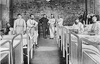 'Für die Kriegsgefangenen, die an Seuchen erkrankt oder seuchenverdächtig sind, wird ein neues Lager auf dem gesunden trockenen Sandboden der Kinderhauser Heide aus Wellblech aufgebaut, dort, wo der Sandweg am Max-Clemens-Kanal auf die Kinderhauser Landstraße trifft.'