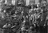 'Seit Montag früh rollen in ununterbrochener Folge die Truppentransporte durch unseren Bahnhof. Nach Westen, gen Frankreich und Belgien fahren die fertig eingekleideten Soldaten, die Munitionszüge, die Wagen mit Artillerie, Pferden, Pünten und anderem Kriegsgerät, nach Norden die Matrosen und Seesoldaten und lange Züge mit Bunkerkohlen und Koks. Alle Soldaten sind von hellster Begeisterung erfüllt, singen Lieder und brennen voller Mut und Kampfesfreude.'