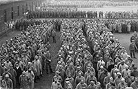 'Am Vormittag und in der Mittagsstunde wurden mehrere hundert kriegsgefangene Franzosen und Engländer aus den hiesigen Lagern zu den Sommerlagern bei Schöppingen im Kreise Ahaus gebracht, eine Vergeltungsmaßnahme für die außerordentlich schlechte Unterbringung und Behandlung unserer Leute in den französischen Gefangenenlagern in Afrika.'