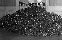 Als Ausweg aus dem Mangel an Rohstoffen werden die Produktion von Ersatzstoffen, die synthetische Produktion, strenge Rationierungen, systematische Altmaterialsammlungen oder auch die Abgabe von Metallen verordnet. Im September 1915 erfolgt erstmals die Beschlagnahme von Kupfer, Messing und Nickelgegenständen und die Schaffung einer zentralen Metallabgabestelle.