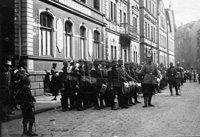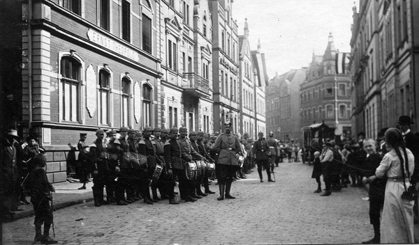 'Mit großen militärischen Ehren wurde die Leiche des Inspekteurs der Landsturm-Inspektion des VII. Armeekorps Generalmajors Wilhelm Müller zum Bahnhof begleitet.'