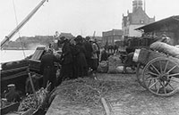 'Der städtische Gemüsemarkt auf dem Syndikatplatz erfreut sich größter Beliebtheit und stärksten Besuches. Die Ware ist ausgezeichnet, billig und in großen Mengen vorrätig. Der Ruf unseres Gemüsemarktes hat sich schnell verbreitet und in einer Reihe von Städten bereits Nachahmung gefunden, wozu der Kommandierende General in einem Rundschreiben aufgefordert hat.'