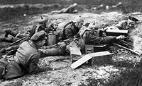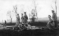 'Bei einer nochmaligen Musterung der ungedienten Kriegspflichtigen wurden in Rücksicht auf den außerordentlich großen Bedarf an Ersatzmannschaften die meisten als felddienstfähig befunden; darunter ein zwanzigjähriger Friseurgehilfe mit einem Gewicht von 78 Pfund, einer Größe von 149 Zentimeter und einem Brustumfang von 69 Zentimeter; im Vorjahre war er wegen eines Herzklappenfehlers 'garnisondienstfähig' geschrieben worden.'