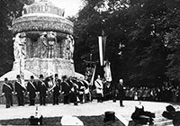 'Aus dem Felde kommt die Nachricht, daß der Bildhauer Bernhard Frydag, der Schöpfer unseres Kriegerdenkmals, bei Lens als Landsturmmann im Anhalter Infanterie-Regiment Nr. 93 sechsunddreißigjährig sein Leben dem Vaterlande geopfert hat.'