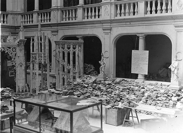 'Mit Rücksicht auf den hohen Bedarf an kostspieligem Füllstoff für die Strohsäcke in den Kasernen bat der Magistrat durch öffentliche Bekanntmachung die Bürgerschaft und die Behörden, zum Füllen der Strohsäcke Zeitungspapier abzuliefern.'