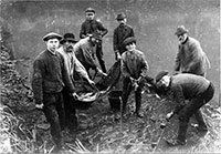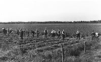'Als 'Hilfsmannen für die Landwirtschaft' enteten vierzig Schüler des Städtischen Gymnasiums und Realgymnasiums auf dem Gute des Landwirts Herold in Amelsbüren Erbsen für die Stadt Münster ab. Aus der Massenspeise-Küche Schrage wurde ihnen die Mittagskost (60 Liter Massenspeise) zugefahren.'