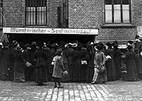 'Die allwöchentlich sich vergrößernden 'Polonäsen' und Drängereien der Käufer veranlaßten die Honigkuchenbäckerei Ewers, ihren Verkaufsladen an der Herrenstraße zu schließen und ihre schönen, begehrten, noch dazu brotmarkenfreien Honigkuchen durch eine Anzahl anderer Geschäfte verkaufen zu lassen. Wie groß die Lebensmittelnot ist, konnte man in diesen Tagen auch vor dem Schokoladengeschäft Reichardt-Kakao am Prinzipalmarkt sehen: die Ausgabe von etwas Schokolade führte zu gefährlichem Ansturm, wüstem Gedränge und stundenlangem Warten zahlreicher Kauflustiger.'