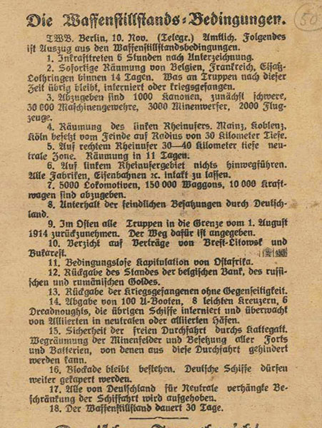 'Heute Mittag um 12 Uhr sind nach Unterzeichnung des Waffenstillstandes die Feindseligkeiten eingestellt!'